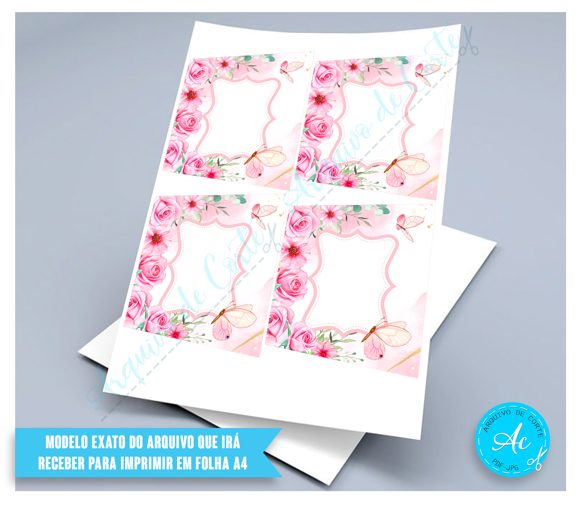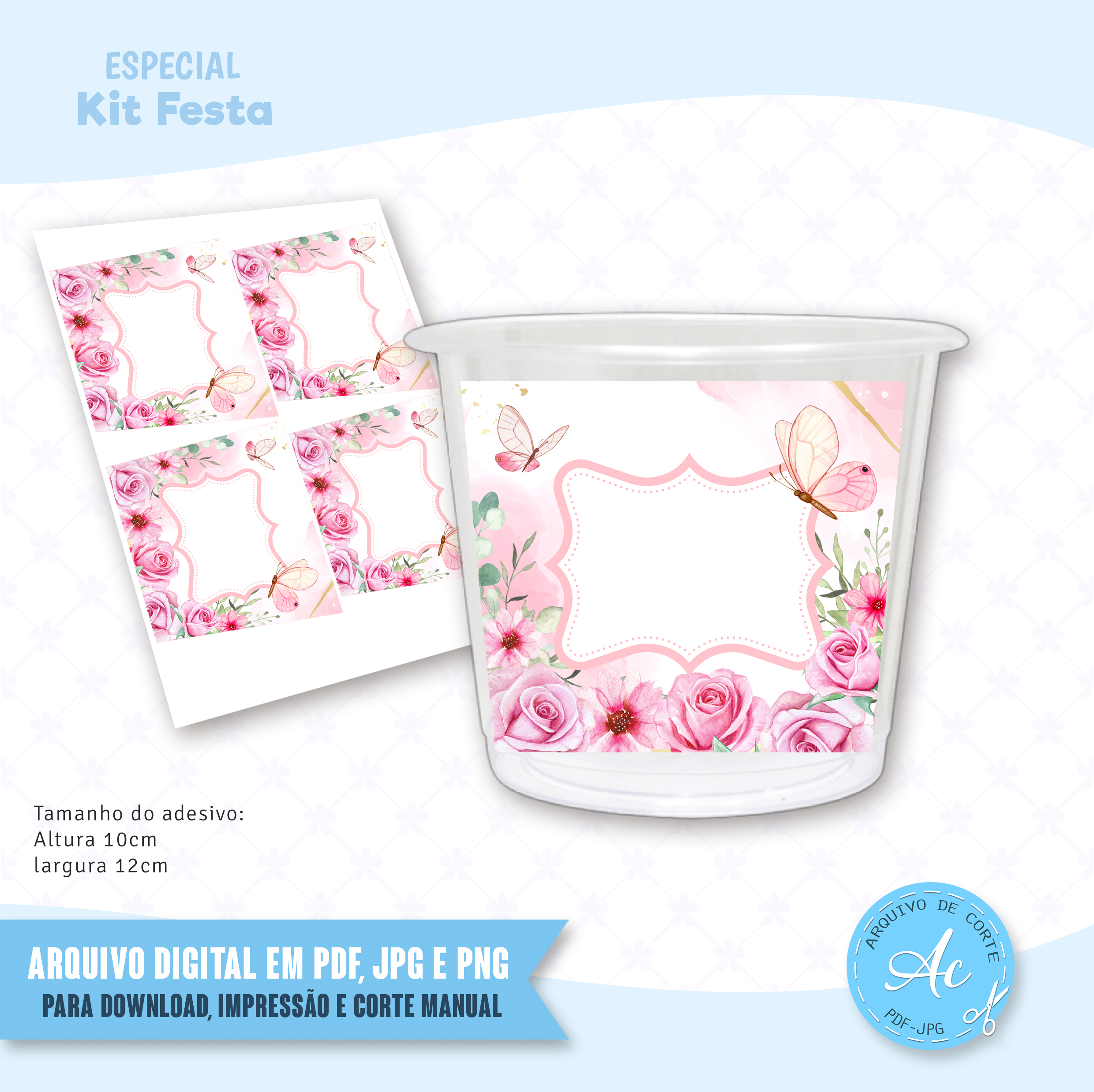 Arquivo Adesivo para baldinho Borboletas e Rosas #1