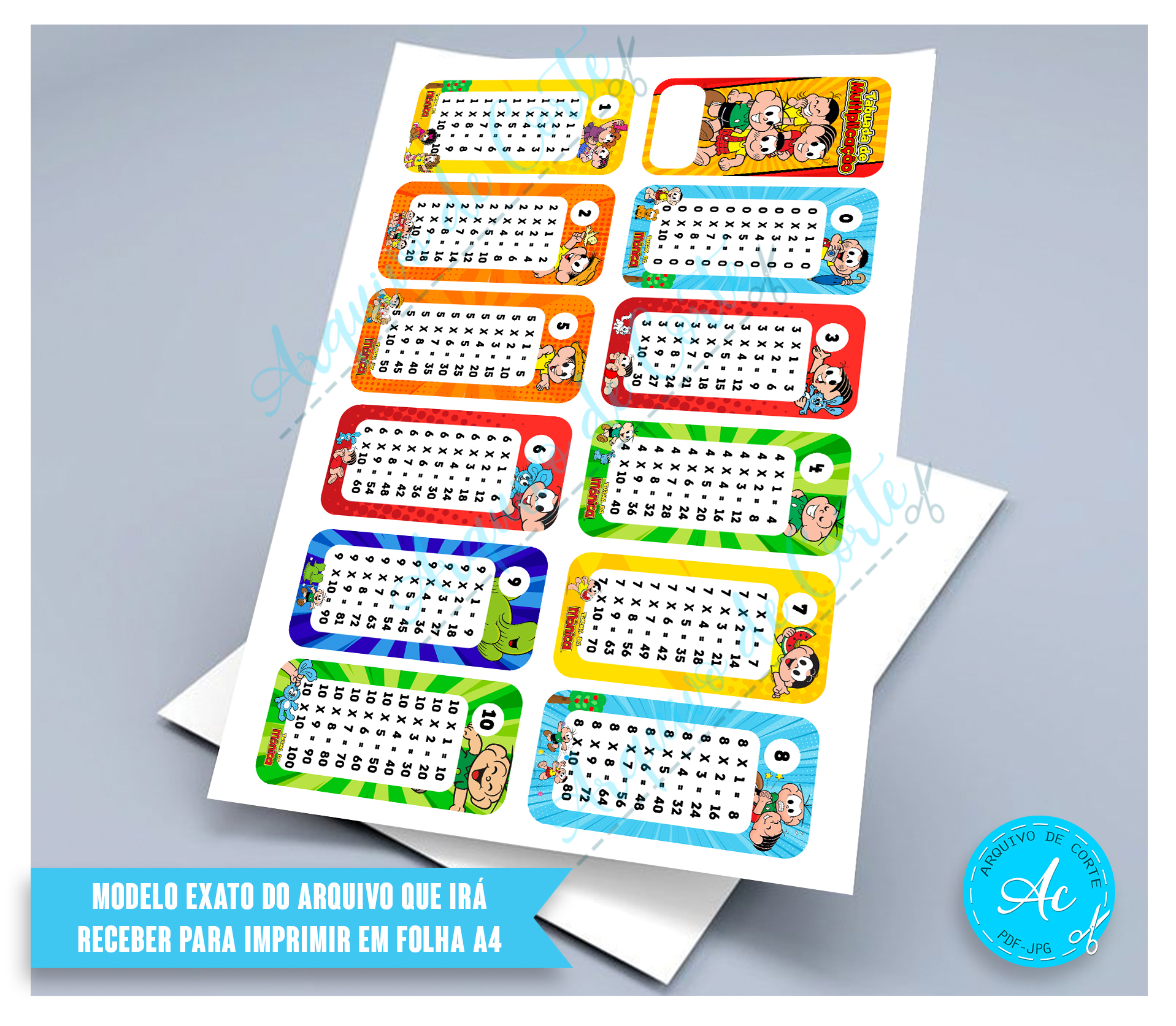 Arquivo Tabuada Turma da Mônica #1 – Apenas multiplicação, conforme a imagem!!
